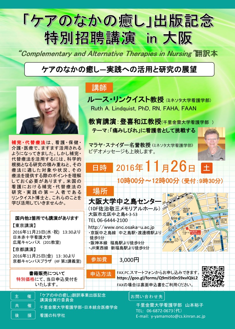 “Complementary and Alternative Therapies in Nursing”翻訳本出版記念として講演会が行われます。