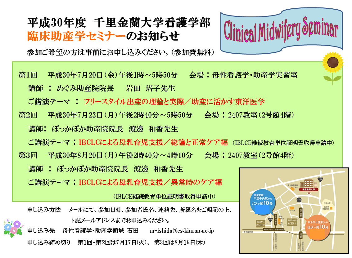 平成30年度 千里金蘭大学看護学部「臨床助産学セミナー」のお知らせ