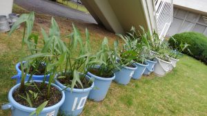千里金蘭大学では、図書館前にて吹田くわいのバケツ栽培を行なっています。