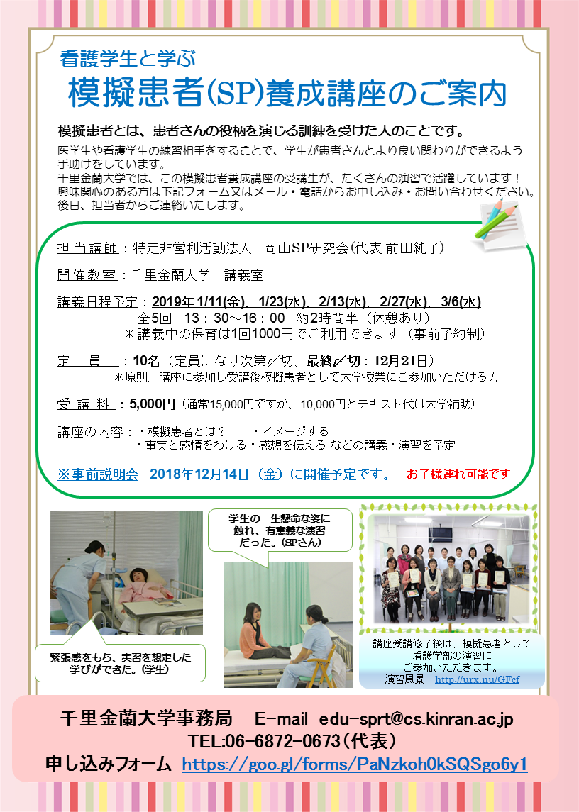 看護学生と学ぶ模擬患者(SP)養成講座募集のご案内