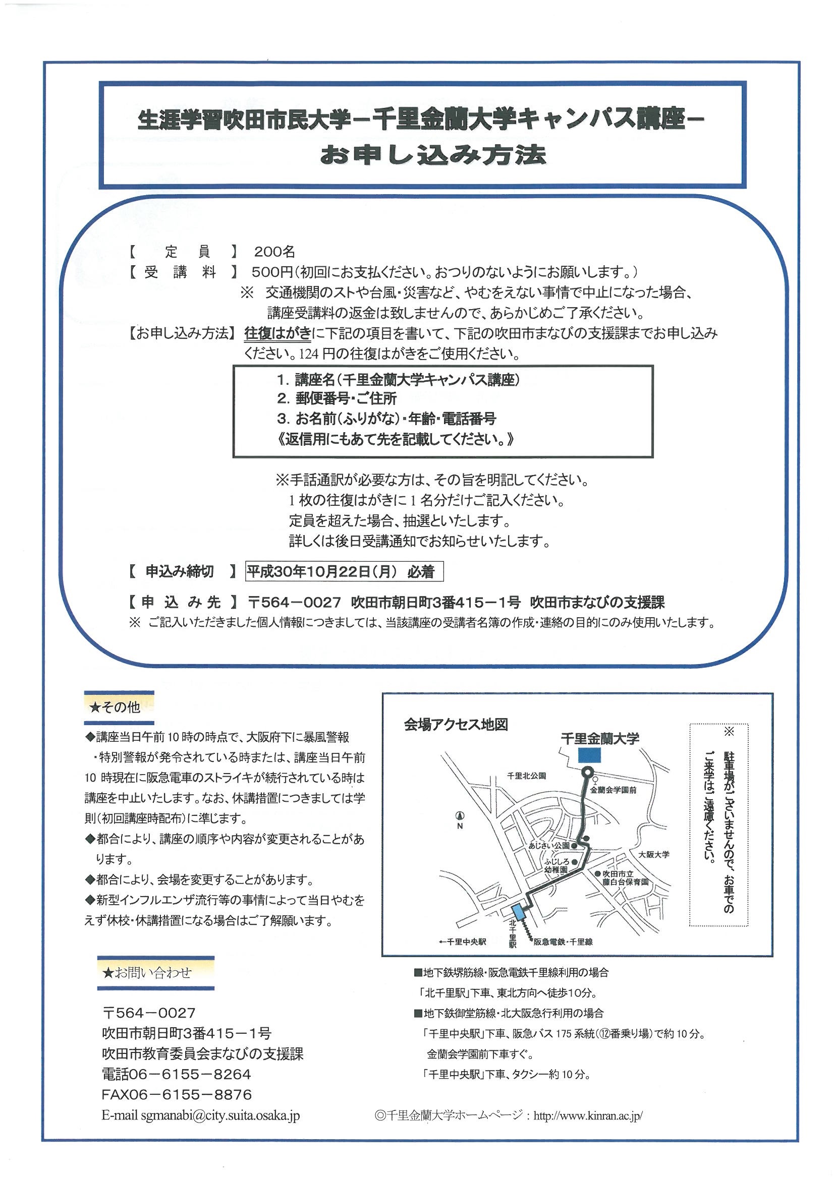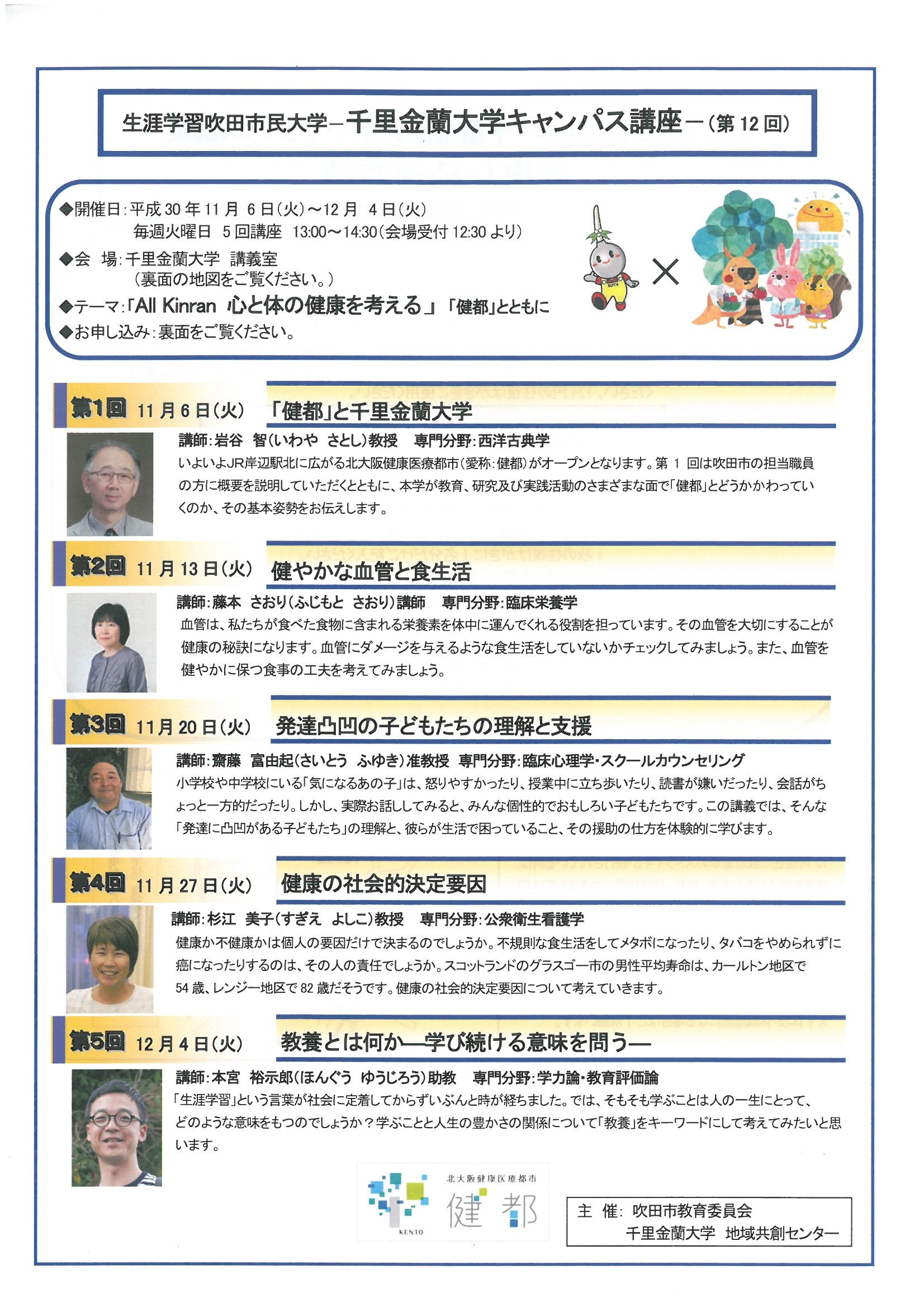 生涯学習吹田市民大学~千里金蘭大学キャンパス講座~(第12回)開催のお知らせ