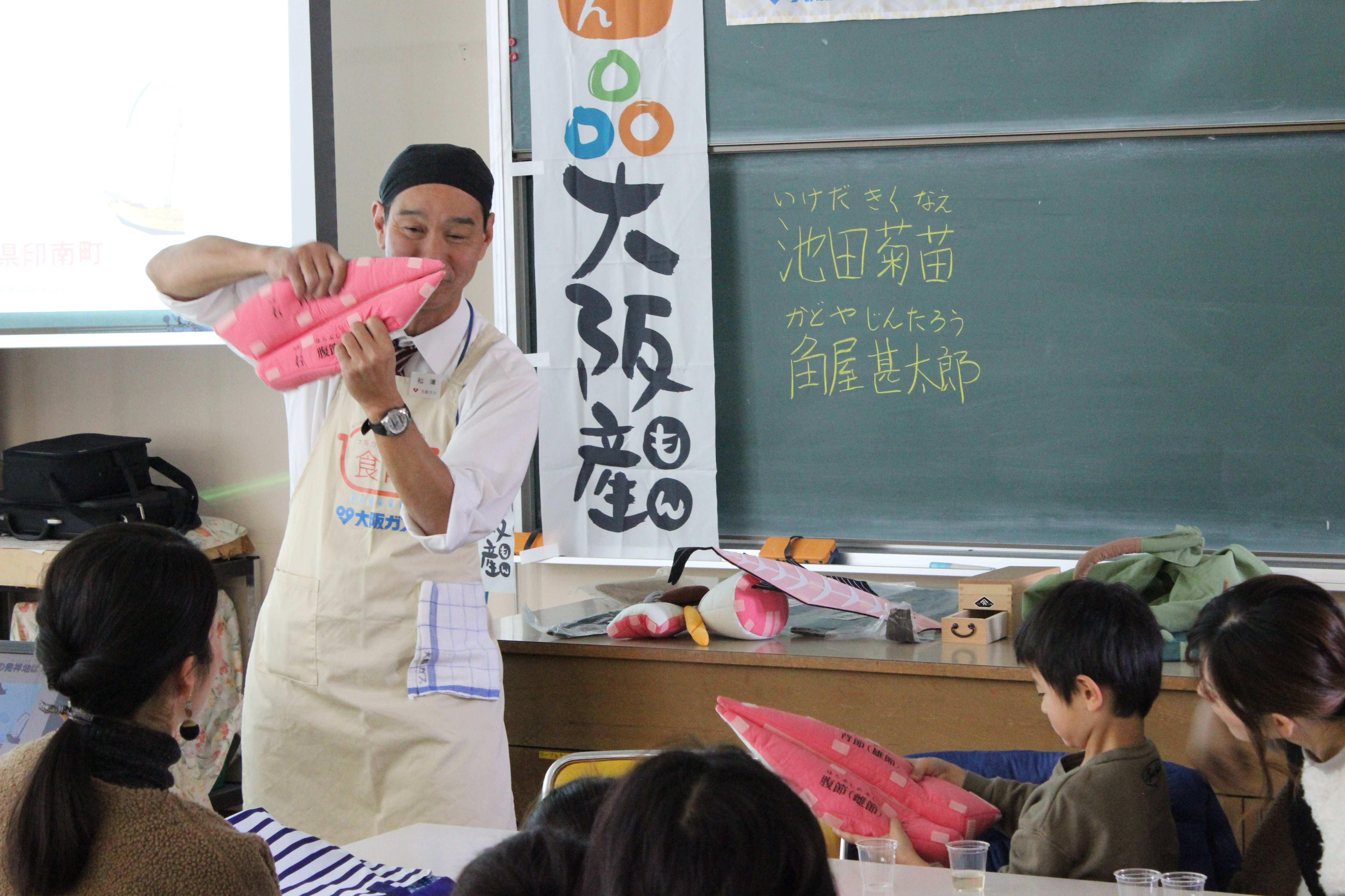 吹田市における吹田くわいの取り組みや、料理におけるうま味の講義、吹田くわいの調理方法について説明がありました。