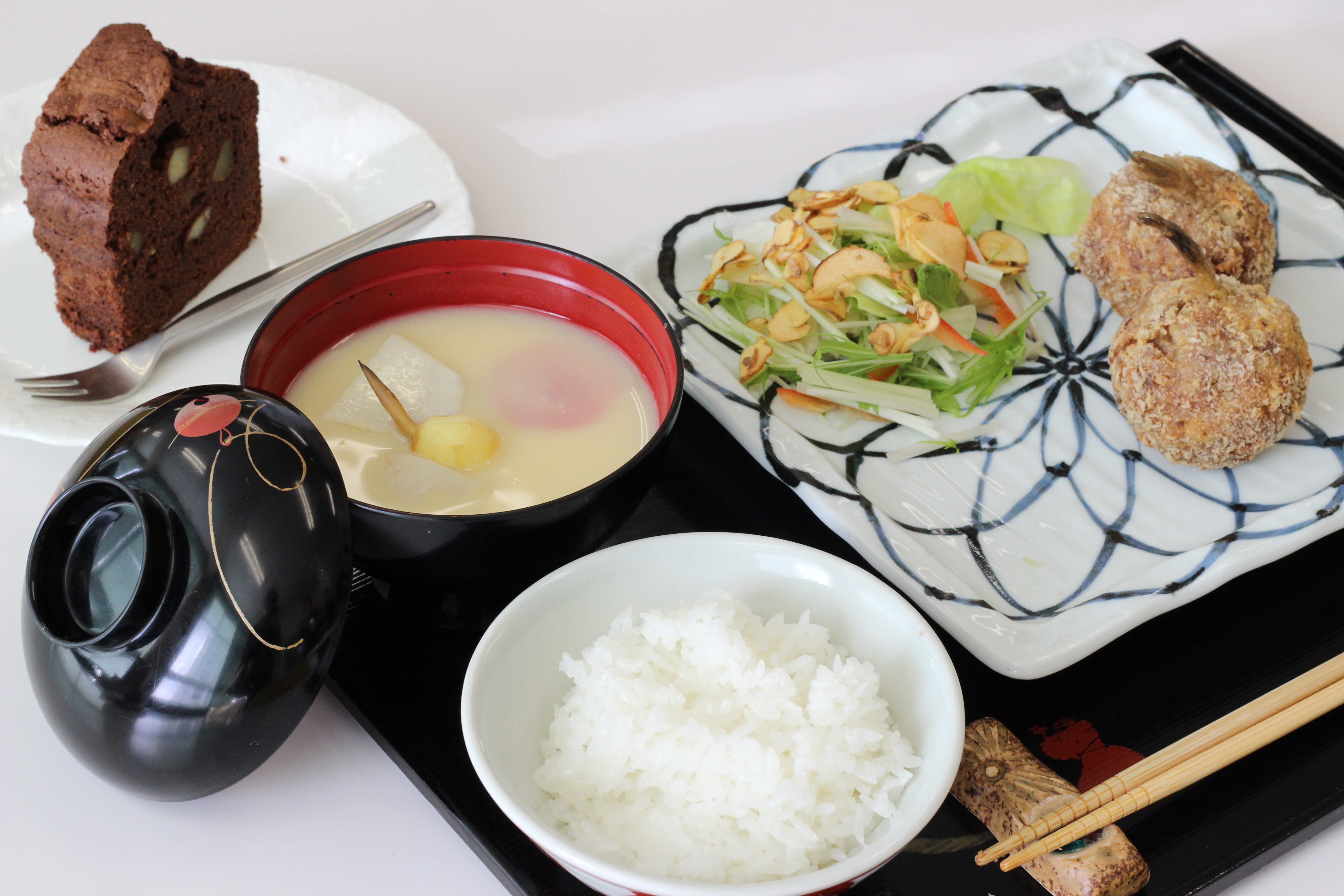 上記、5品の内、「スコッチくわい」と「くわいブラウニー」は本学の学生が考案したメニューです。くわいにはアク抜きが必要ですが、電子レンジでできる調製条件を学生が考案しました。