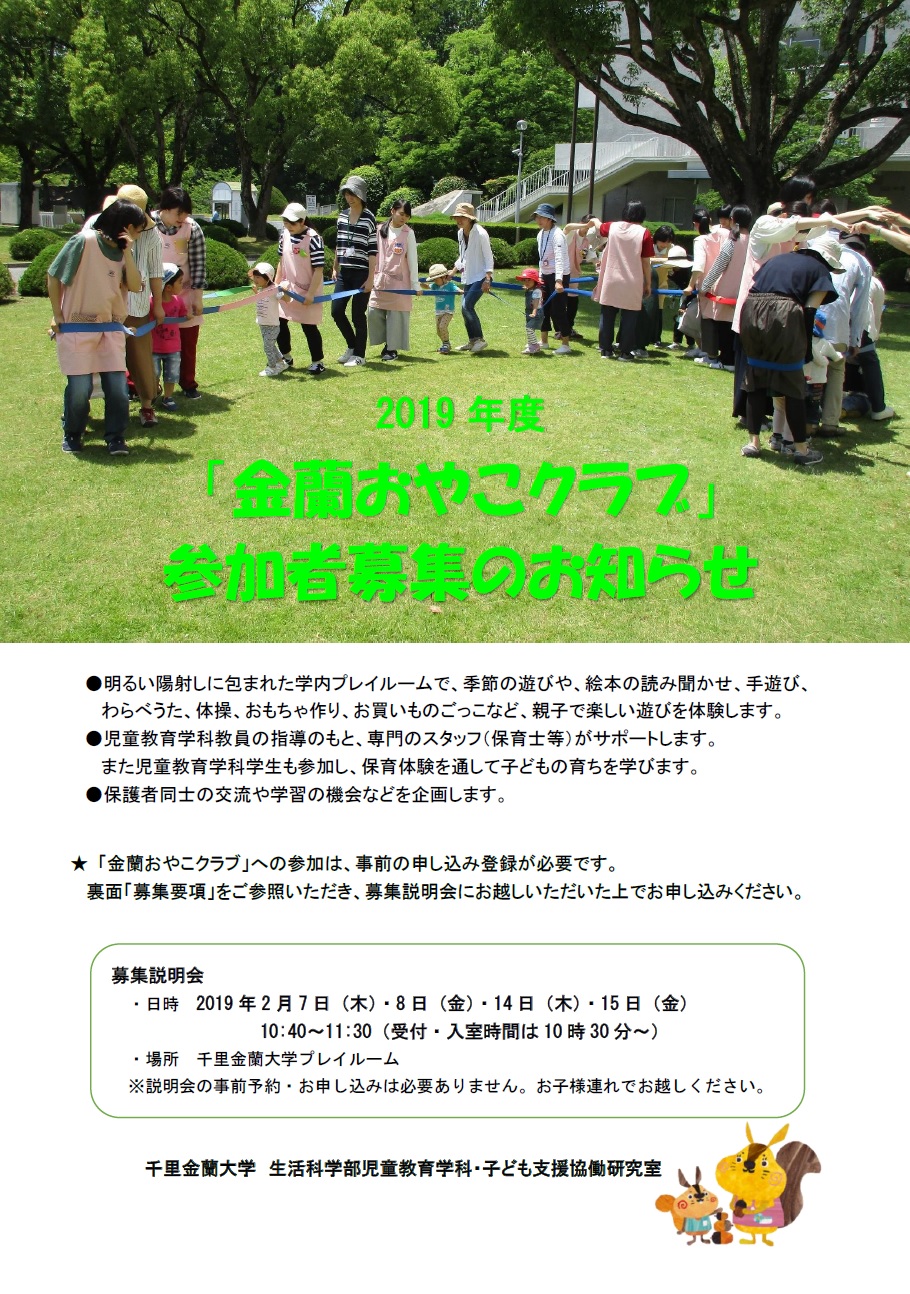 2019年度「金蘭おやこクラブ」参加者募集のお知らせ