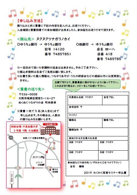 「わくわく保育セミナー つながりあそび・うた保育実技研修会 in OSAKA」の開催について
