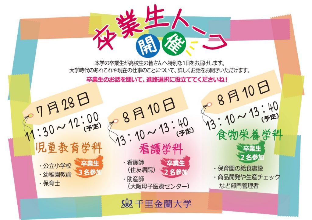 6月のオープンキャンパス開催中止に伴い延期となっておりました「卒業生トーク」の開催日時が決定しました。