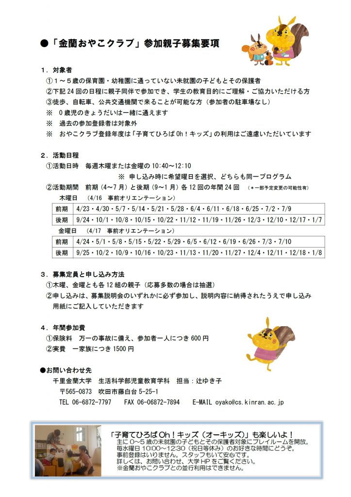 ※「金蘭おやこクラブ」への参加は、事前の申し込み登録が必要です。
