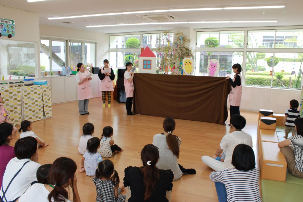 ◆明るい陽射しに包まれた学内プレイルームで、季節の遊び、絵本の読み聞かせ、手遊び、わらべうた、体操、おもちゃ作り、お買いものごっこ、緑豊かなキャンパスでの外遊びなど、親子で楽しい遊びを体験します。