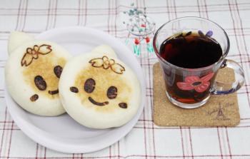 米粉を含んだ生地を使用してすいたんの顔をかたどったものに、焼き印を用いて顔を表現したパン。専用のシールを作成し、商品袋に添付