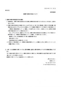 6月1日(月)からの対面授業再開にあたり、体調不良を認めた際は無理をせず別添のとおり対応してください。