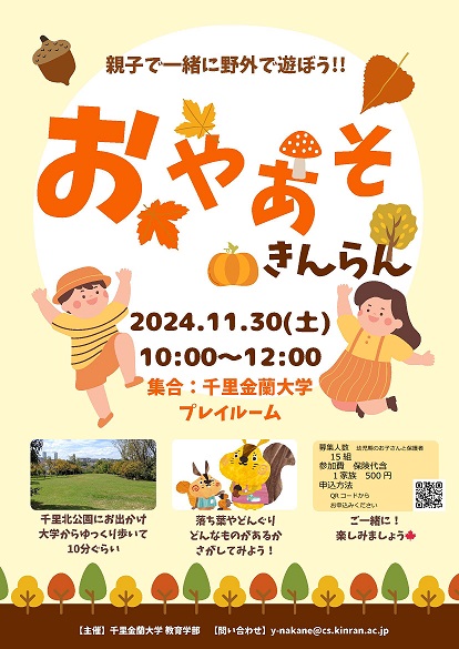 2024年11月30日(土)10時から、「親子で一緒に野外で遊ぼう!!おやあそきんらん」を開催します。