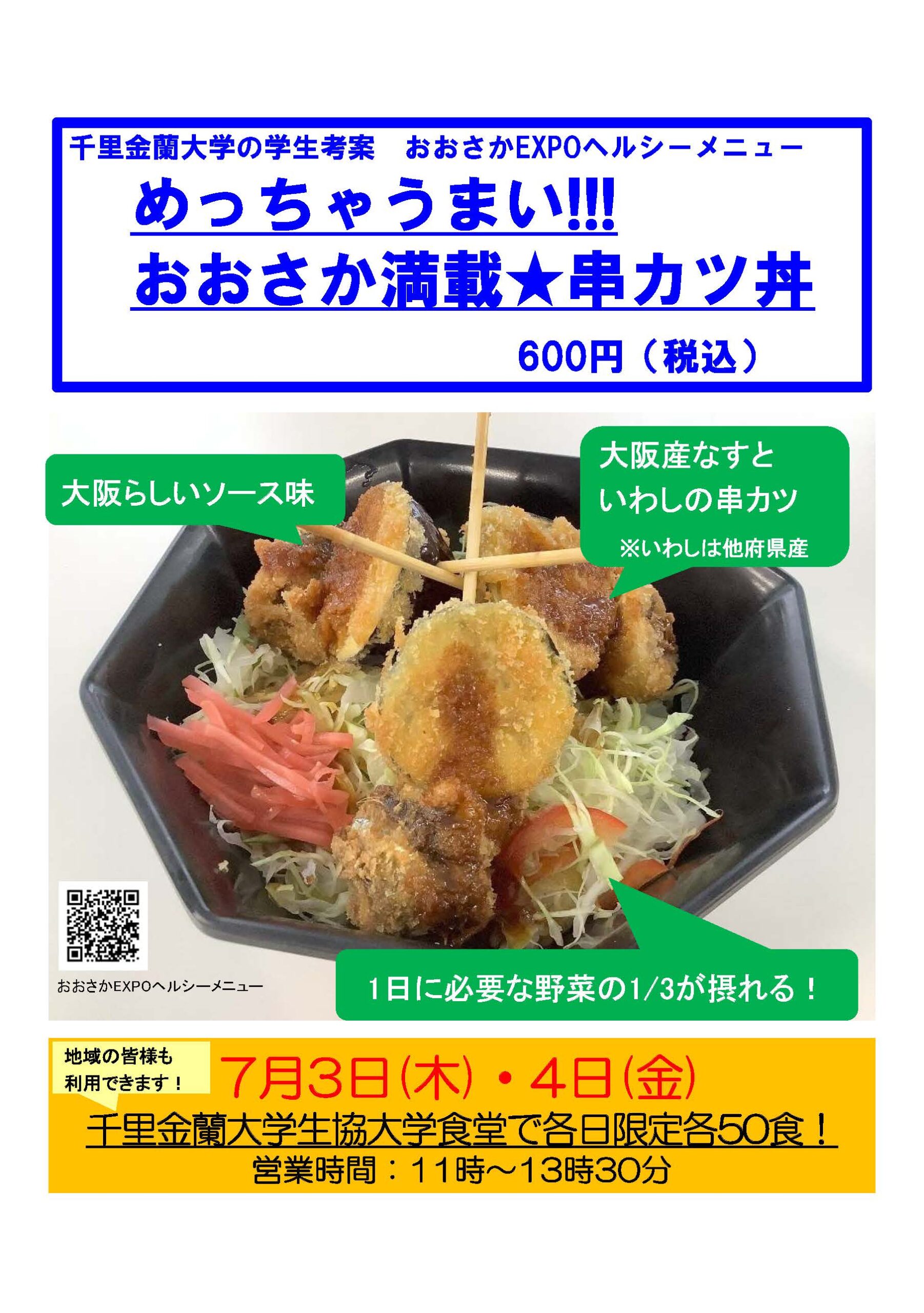 2025年7月3日(木)・4日(金)に千里金蘭大学の食堂において、学生考案レシピが販売されます。