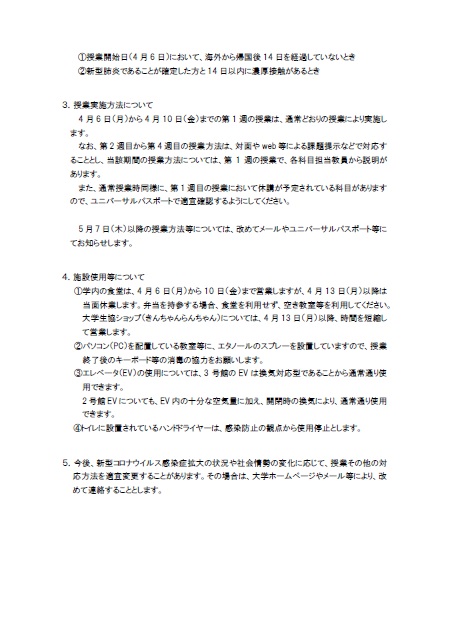 【在学生及び保護者の皆さまへ】新型コロナウイルス感染拡大防止を考慮した令和2年度前期授業の実施について(2020年4月2日更新)