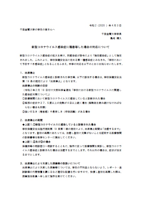新型コロナウイルス感染症に罹患等した場合の対応について(2020年4月3日更新)