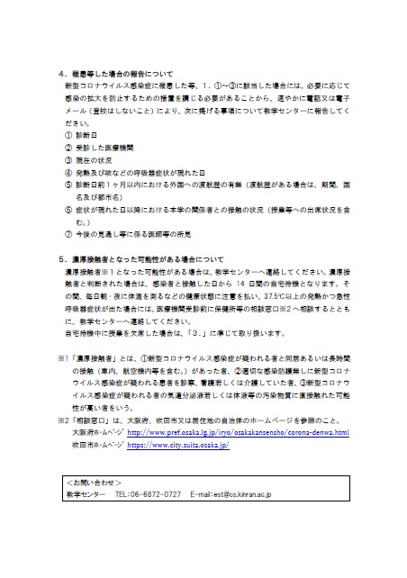 これにより、学校保健安全法に定める第一種感染症とみなされ、「学校において予防すべき感染症」となることをふまえ、本学の対応をお知らせいたします。